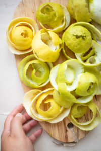 - Skræl citronerne med en lille kniv eller en kartoffelskræller.