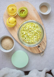 - 180 g Finthakket Citron Skal (Jeg brugte 7 citronskræller)