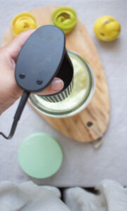 - Put citronskallen ned i et stort glas eller på en glasflaske med skruelåg.