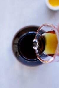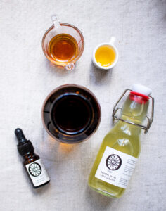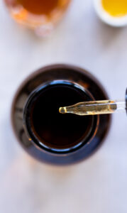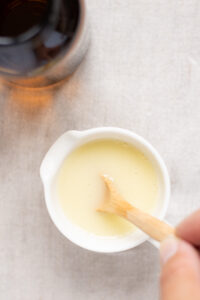 - Sørg for at veje ahornsirup, castille sæbe og jojoba olie op i hver sin lille kop.
