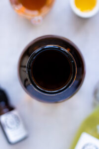 Selvom jeg også kan lide en bar sæbe til ansigtet, er det nu alligevel denne ansigtsrens jeg altid vender tilbage til. I flere år lavede jeg den med Dr. Bronners Castille sæbe. Men da jeg en dag for ca. 7 år siden, kiggede bagpå det ellers så “green washede” produkt. Var det til min store og naive overraskelse, slet ikke lavet med oliven olie, men kokos og palmeolie. Samt en hel del andre ting, som jeg slet ikke ønsker mig på min hud “host host hvilken joke”.