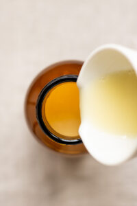 - Hæld jojoba olien ned i dit mål med castille sæbe.