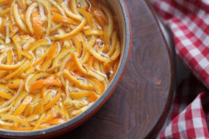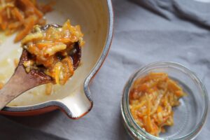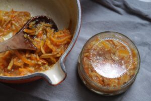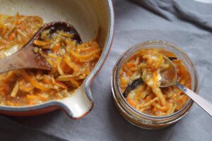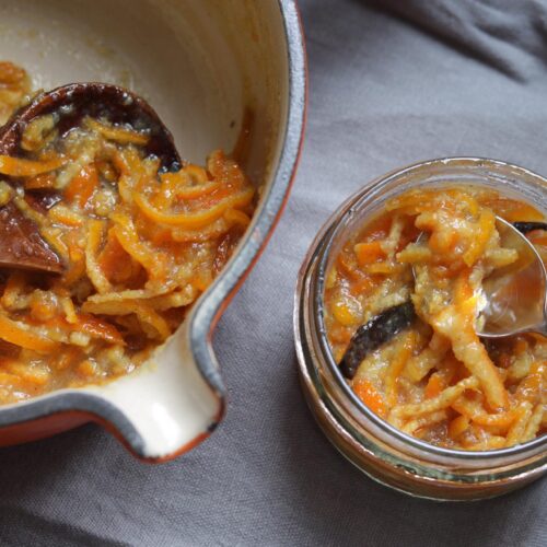 Skræller kan ikke rigtigt holde sig meget længere end 3 døgn, så det er nyttigt at samle sammen henover dagene og der er flest skræller efter weekenden hos os. Så nu slog jeg til og lavede denne lette confit, som er super god til diverse retter i det søde og salte køkken.