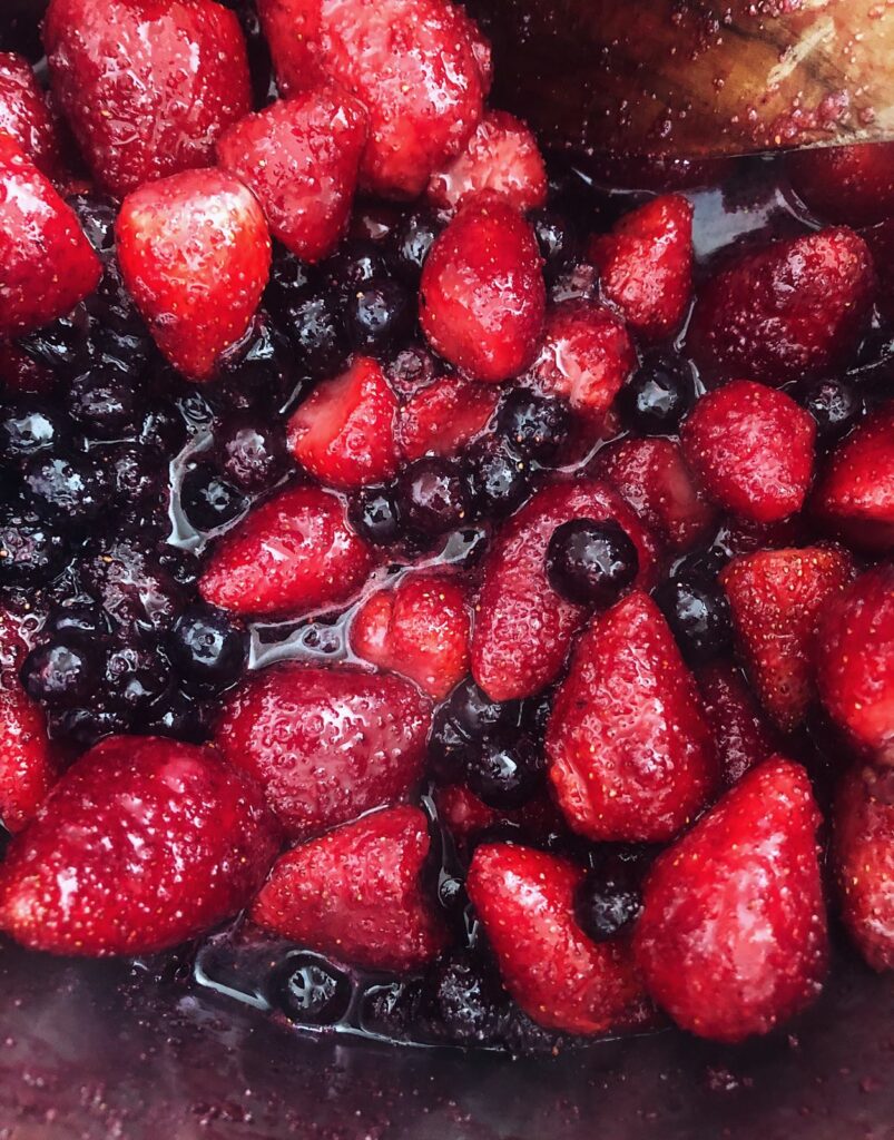 Dette er min yndlings marmelade når sensommeren banker på, det er sådan en smuk og enkel blanding af blåbær og jordbær, man kan bruge mange andre bær kombinationer i skovbær marmelader, men denne enkle blanding er blevet en stor succes herhjemme…