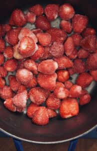 - Put de frosne bær ned i en god gryde, jeg foretrækker en god Kobbergryde, Staub eller Le Creuset til marmelade.