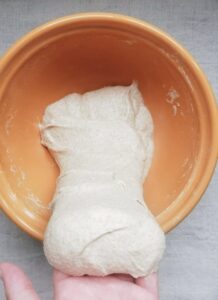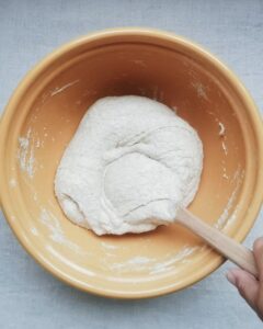 - Når dejen har trukket med saltet, starter bulk fermenterings processen, det betyder dejen skal foldes og hvile henover flere omgange/set.