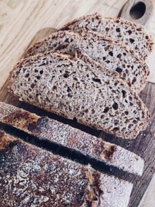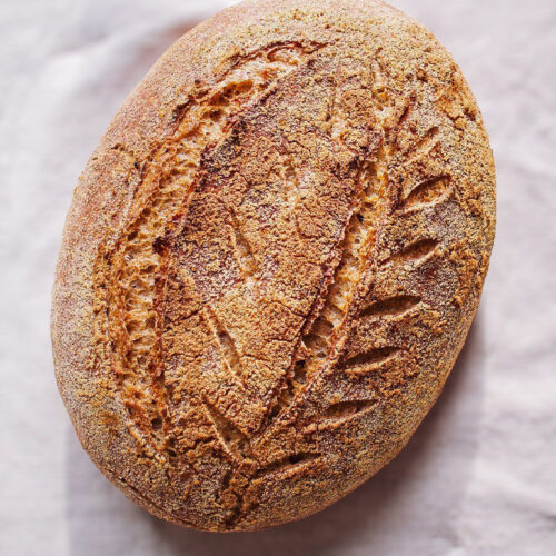 Friskkværnede speltbær, salt, vand, aktiv surdej og tid, er det eneste der skal bruges til dette enkle brød, som smager og dufter aldeles skønt…