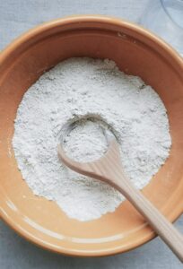 - Nedbryd klid og skaldele til den mindst mulige størrelse, ved at kværne det på en kaffemølle eller krydderikværn. Jeg plejer at køre alt melet i ca. 30 sekunder per 1 deciliter mel og så har jeg et meget fint mel. Jo finere mel, desto bedre hæveevne. Når vi bager med fuldkorn er det vigtigt for krummen, som bliver blødere og brødet hæver bedre op, desto finere dit mel er.