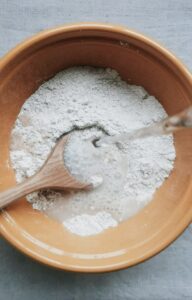 - Tag din aktiverede surdej og bland den med vand og mel. rør det til en relativ tør og fast levain og lad den stå i et rum der er ca. 24-25 grader i ca. 3 time,