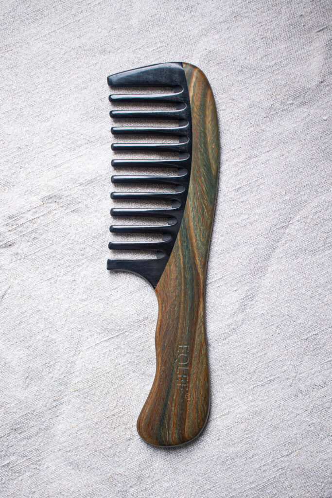 Jeg bruger denne hornkam fra EQLEF dagligt, det er en skøn blød kam med sandeltræs håndtag og horn tænder. Den er så dejlig og den dufter skønt hver gang man bruger den. Det er min nyeste kam omkring et år gammel, men jeg er meget glad for den. Den er virkelig skøn at rede igennem hår og fjerner ikke definitionen af mine naturlige bølger i håret.