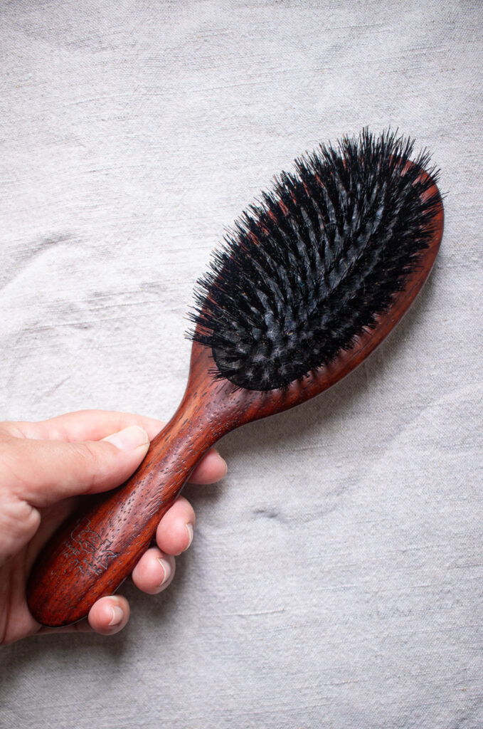 Hvis jeg skal sætte mit hår op i hestehale/knold/fletning tager jeg ofte vildsvinebørsten og reder håret igennem og sætter det med den (men jeg bruger den ikke til mere end det).