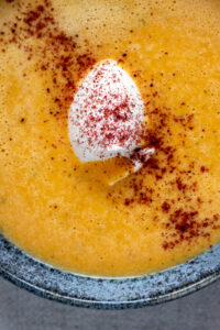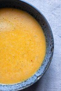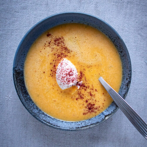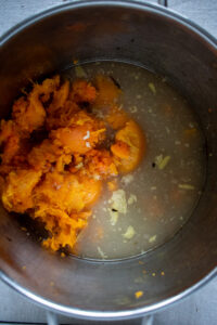 - Hæld butternut kødet ned i en stor gryde sammen med kyllingefonden. Giv suppen et opkog og lad den simre i 5 minutter. Blend nu suppen med en bamix eller lignende stavblender. Tilsæt fløde og chili og smag til med evt. salt hvis din fond ikke er salt nok og pisk den op inden servering.