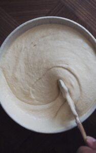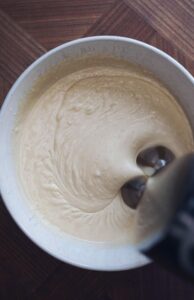 - Pisk på max indtil du opnår en tyk og luftig dej, med en konsistens som flødeskum.