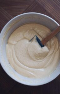 - Pisk igen, til dejen er helt tyk og fri for klumper.