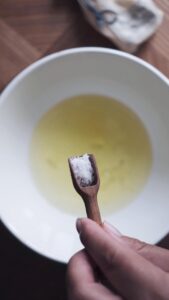 - Gør de 5 æggehvider klar og tilsæt saltet. (husk at gemme blommerne på køl til en anden opskrift)