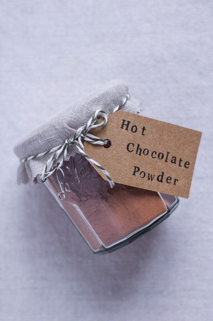 - Hæld chokoladepulveret over på et glas eller mange glas, hvis du foreksempel har lavet det til gaver.