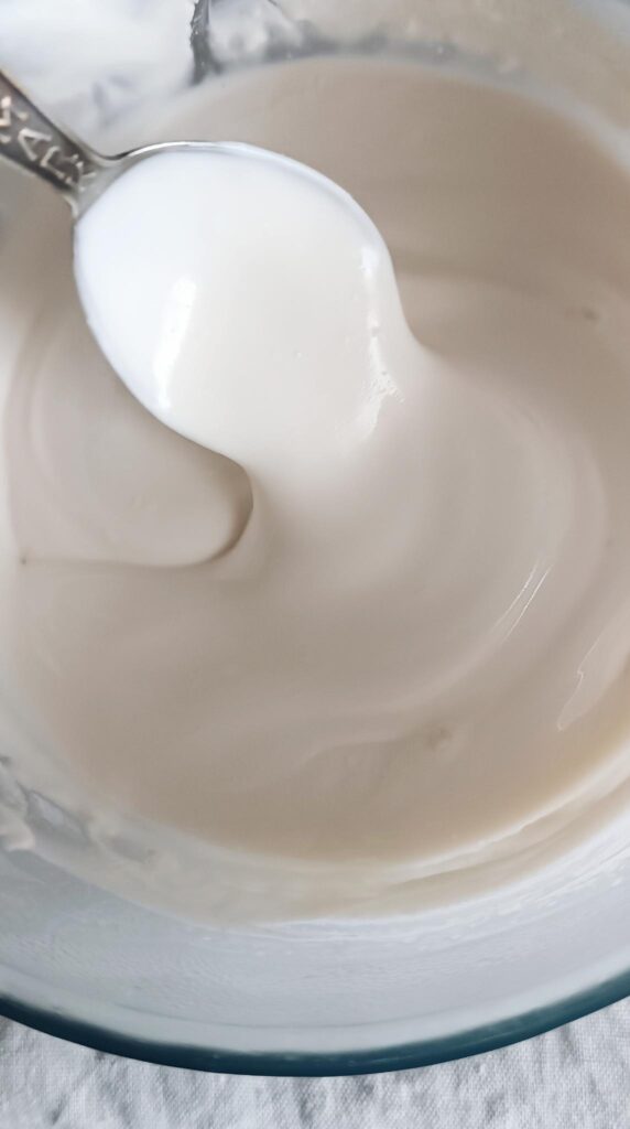 Her har jeg syrnet en 19% fløde og den er relativ tynd, ligesom en creme fraiche 18%…