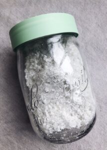 - 75 g Fint Havsalt (Brug et tørt salt, det mindskner klumper bare sørg for det er fri for tilsætningsstoffer)