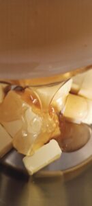 - Smelt smør og honning i en stor gryde, ved lav varme.