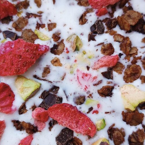 Saltet Chokolade Granola med Jordbær & Pistacie