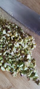 - Imens granolaen køler af, hakkes pistacienødderne groft.