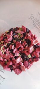 - 40 g Hakkede afskallede Pistacienødder (Sørg for dine nødder ikke er ristet i olie)