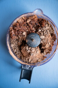 - Put dadlerne i food processoren og pulse indtil de ser således ud.