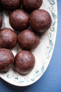 - Når kuglerne er rullet er de klar til servering, de er skønne til en kop te og vidunderlige med et glas koldt råmælk.