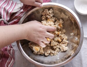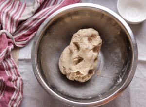 - Ælt og arbejd hurtigt med fingerspidserne og få dejen samlet uden at gøre den varm.