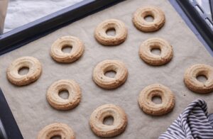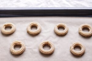 - Placer dine frosne kranse på bagepapiret med godt mellemrum.