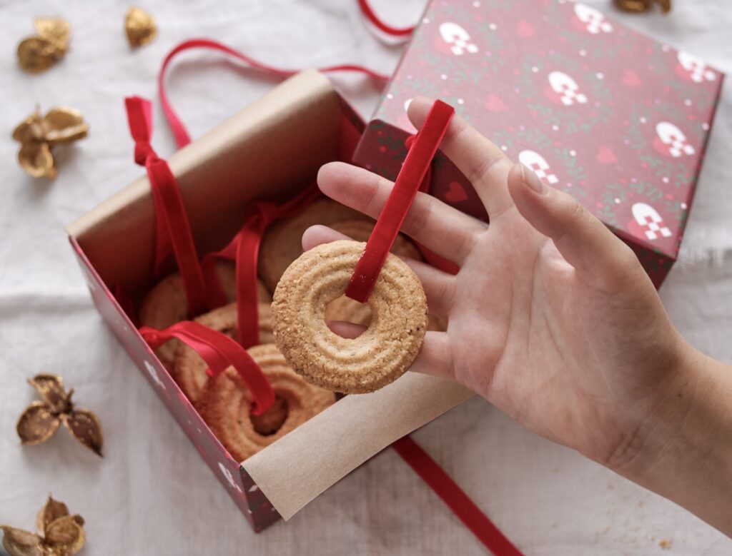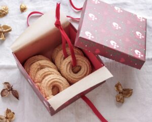 - Put dem i kagedåser i metal med papir eller bind dem med bånd og pak dem ind som en værtindegave, som vist på billedet her.